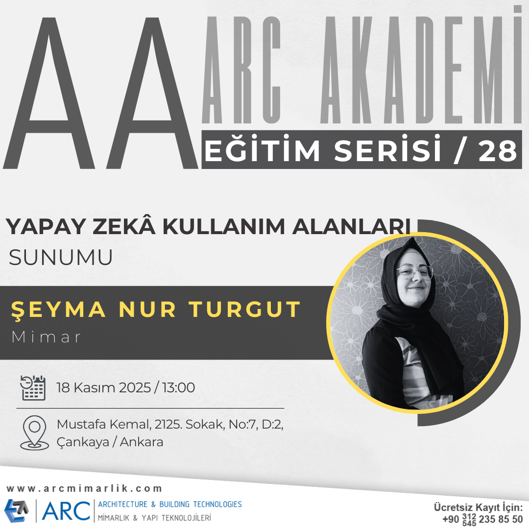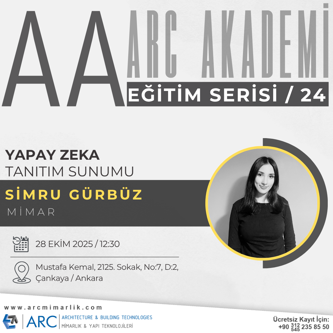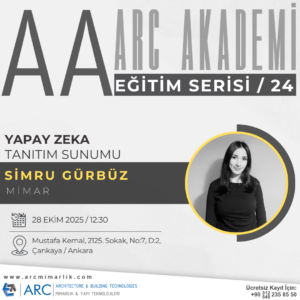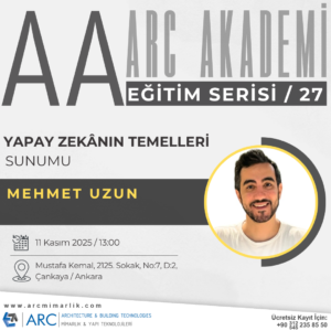 ARC Mimarlık olarak, “Yapay Zekâ Kullanım Alanları” başlıklı eğitimimizi 18 Kasım tarihinde ofisimizde gerçekleştirdik.